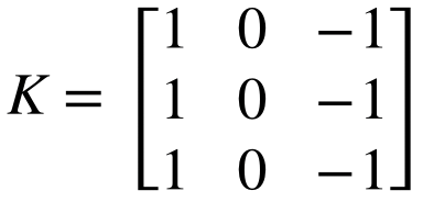 Kh = [[0., 0., 0.],[-1., 1., 0.], [0., 0., 0.]]