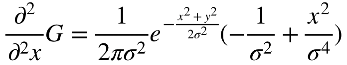 K[y + pad, x + pad] = (x ** 2 + y ** 2 - 2 * (sigma ** 2)) * np.exp( - (x ** 2 + y ** 2) / (2 * (sigma ** 2)))