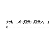 객체에 대해 처리명령(메시지의 기동명령)을 의미한다. '동기 메시지'는 이 메시지의 처리가 끝날 때까지 다음 메시지를 기동하지 않는 사양을 작성할 때 사용한다. 실행처의 라이프 라인은 이 메시지가 끝날 때 까지 대기한다. 메시지 명 뒤에는 괄호를 붙여 인수를 기재한다.