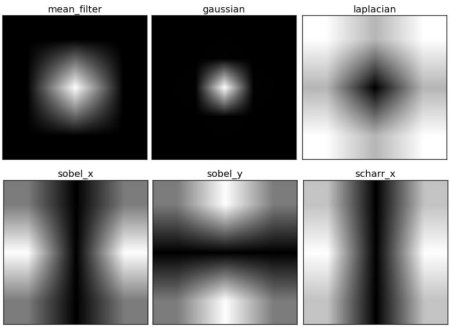 filters = [mean_filter, gaussian, laplacian, sobel_x, sobel_y, scharr]