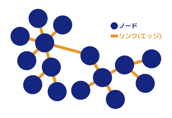한편 노드와 노드를 연결하고 있는 (케이블 등) 것은 '링크(link, リンク)' 혹은 '엣지(edge, エッジ)'라고 부른다. 링크와 노드, 엣지를 합쳐서 1개의 네트워크가 완성되는 것이다.
