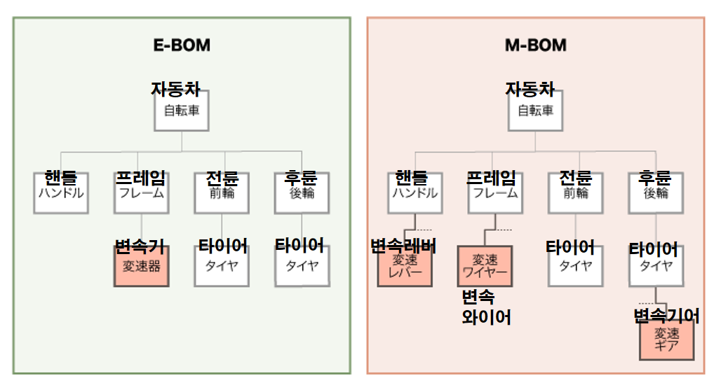 즉, E-BOM과 M-BOM의 차이를 정리하자면 다음과 같다.