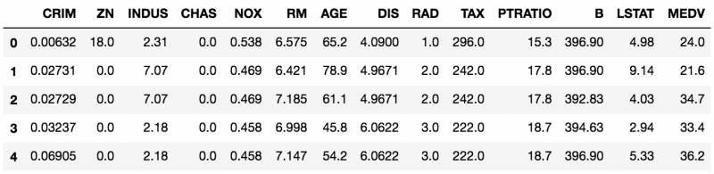 df['MEDV'] = np.array(boston.target)