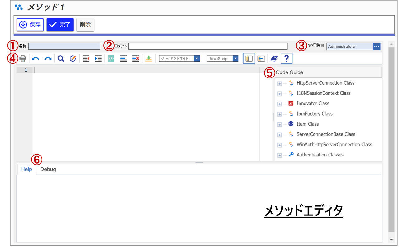 ② 코멘트(コメント): 메소드의 목적이나 설명 등을 입력.