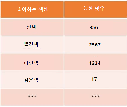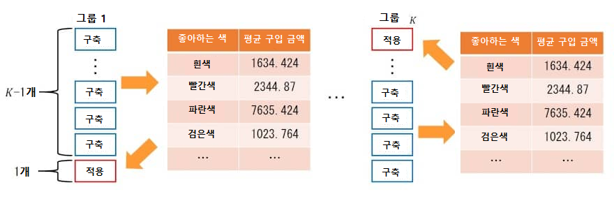 예를 들어, 목적변수로는 어떤 판매 사이트의 1개월의 총 구매 금액으로 하고, (유저 회원가입시에 설정하도록 하는 방법)좋아하는 색상의 예를 계속해서 사용하다면, 흰색을 좋아하는 사람의 평균 구입 금액이 163만4424원, 빨간색을 좋아하는 사람의 평균 구입 금액은 234만4487원, 파란색을 좋아하는 사람의 평균 구입 금액은 763만 5424원, 검은색을 좋아하는 사람의 평균 구입 금액이 102만 3764원인 경우 그 금액을 각 해당 항목에 기재하는 것이다.