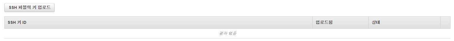 서비스 검색 창에 "IAM" 검색 > "사용자 선택" > 공개키를 등록할 유저 선택 > "보안 자격 증명" 탭 클릭한다. 아래의 메뉴가 보이면 된다.