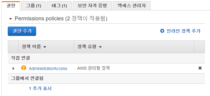 | AWSCodeCommitFullAccess | CodeCommit의 모든 제어 |