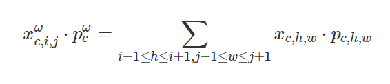 여기서, xc,i,j는 이미지의 c번째의 채널의 위치 (i, j)를 의미하는 것이다. 그리고 T(⋅)는 2차원 공간의 공간의 함수로, Funnel Condition이라고 불리고 있다. Funnel Condition의 식에서 왼쪽의 첫 번째, xωc,i,j는 Parametric Pooling Window이라고 불리는 것으로, xc,i,j를 중심으로 한 kh×kw의 윈도우이다. 윈도우 사이즈는 기본적으로 3x3이다. pωc는 그 관계를 나타내고 있다. pωc는 PReLU와 동일하게 채널마다 다르다.