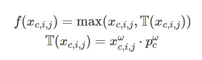 그럼 이제, FReLU를 수식으로 살펴보자. FReLU f(⋅)는 아래의 식으로 정의되어 있다 :