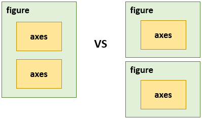 여러 개의 그래프를 그릴 경우 figure과 axes이라는 개념을 사용해야한다. figure은 그림 전체, axes는 그 내부의 좌표축이다. 그림으로 본 다면 다음과 같다.