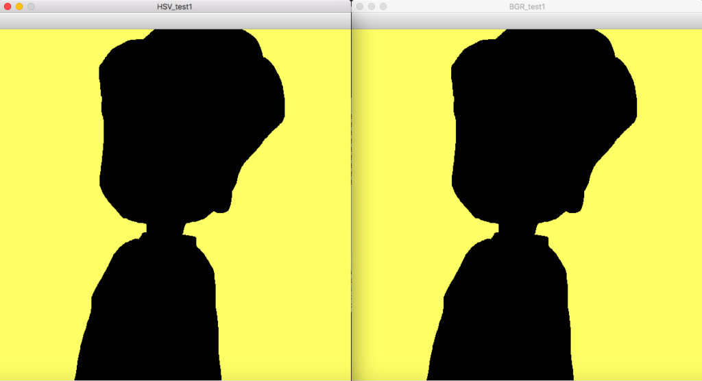 왼쪽은 HSV 추출 방법으로 추출한 것이고 반대는 BGR 추출 방법으로 추출한 것이다.