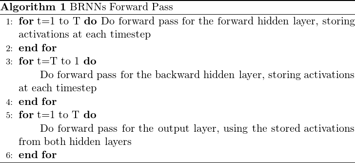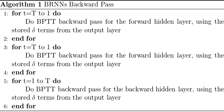 를 먼저 계산하고, 이를 Forward hidden layer와 Backward hidden layer에반대 방향(opposite)으로 전달한다는 점이 차이점이다. 아래는 이 과정을 알고리즘 형태로 나타낸 것이다.