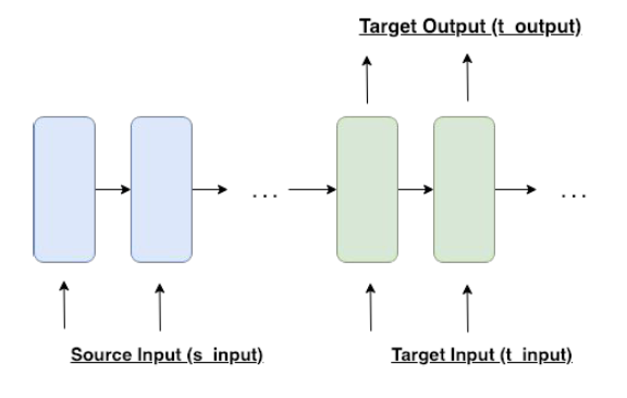 디코더 부분을 살펴보자. 우선 최초 입력값은 START라는 특정 토큰을 활용한다. 이는 문장의 시작을 나타내는 토큰이며, 디코더 역시 인코더와 마찬가지로 해당 단어가 embedding vector형태로 입력값이 되고, 각 step마다 출력이 나온다.이렇게 나온 출력 단어는 다음 step의 입력값으로 사용되는 구조이다. 최종적으로 END라는 토큰이 나오면 문장의 끝이라고 보는 형태로 학습을 진행한다. 간단한 번역 예제를 구현하면서 조금 더 이해해보자.