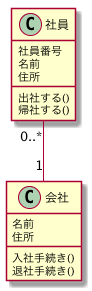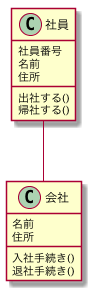 예를 들어, 사원이 1개의 회사에 소속되어 있는 경우 다음과 같이 표현할 수 있다.
