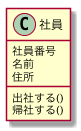 이 그림을 예로 살펴보자면, 클래스명은 "사원", 속성은 "사원 번호", "이름", '주소"이며, 조작은 "출근한다", "퇴근한다"라고 표현할 수 있다.