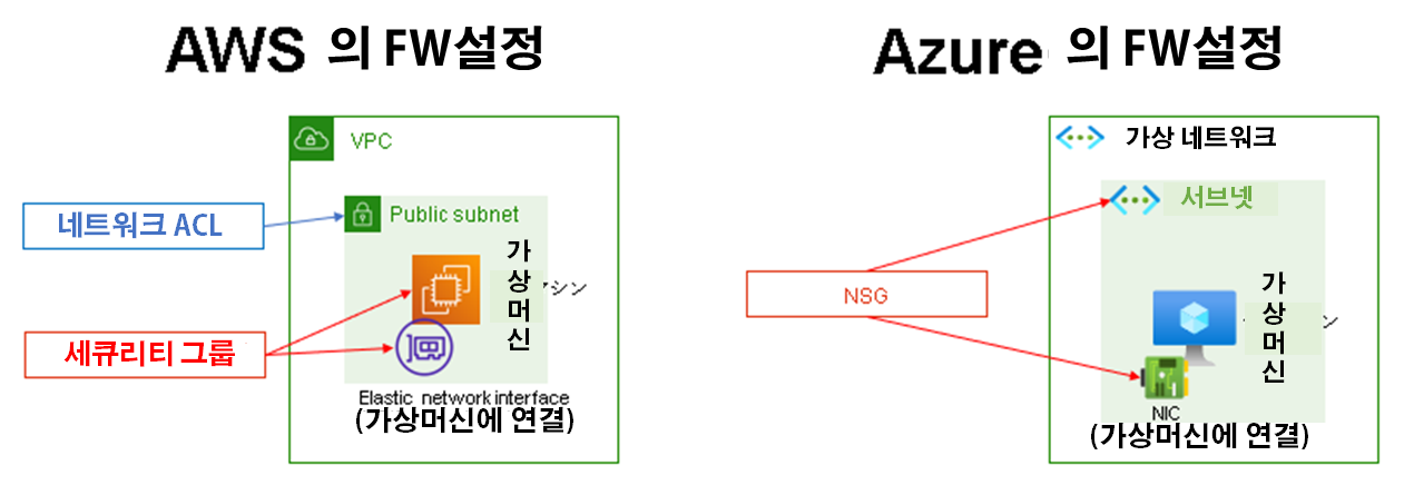 | Azure | 가상 네트워크 | 리소스 단위로 지정한다. |