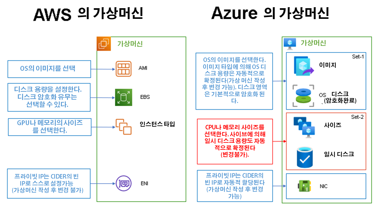 Azure과 AWS의 가상 머신에는 몇 가지 다른 점이 있기에 기재한다.