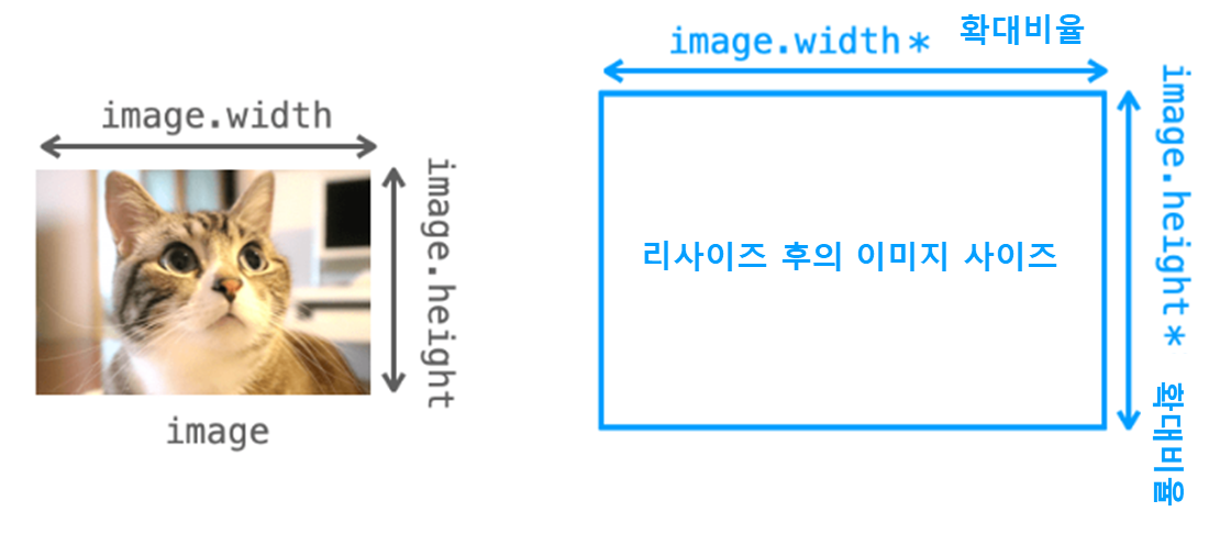 즉, 이미지의 가로 세율 비율을 유지되도록 리사이즈를 하기 위해서는 "원래 이미지 사이즈의 가로 세로 비율"과 인수로 지정하는 "리사이즈 후 이미지 사이즈의 가로 세율 비율"을 같게 하는 것이다(축소의 경우도 마찬가지).