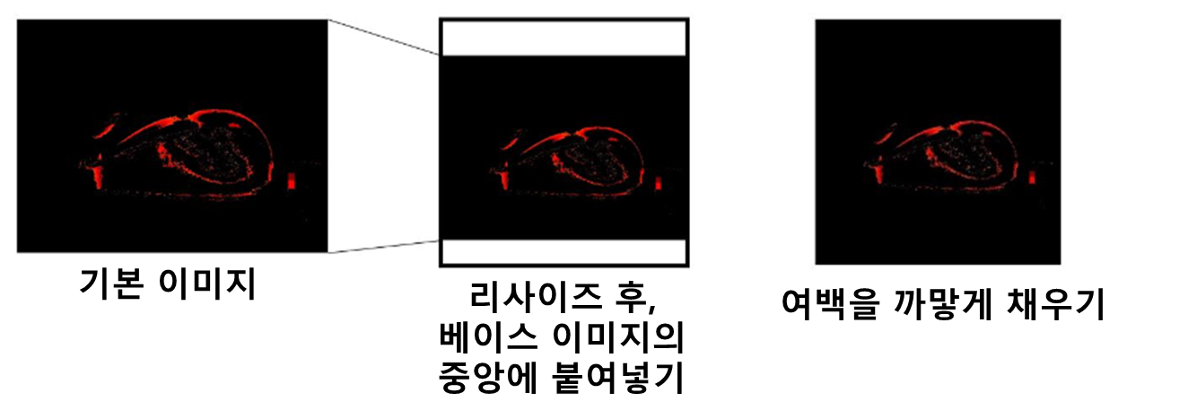 여기서 사용된 코드는 기본 이미지의 가로 세로 사이즈를 유지하도록 리사이즈 후, 여백을 까맣게 채우는 로직에 대한 것이다.