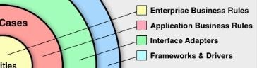 초록색 레이어는 Interface Adapters로 입력, 영속화, 표시를 담당하는 오브젝트가 소속되는 부분이다. 입력이란 Application Business Rules에 전달하기 위한 데이터 가공을 의미하며, 영속화는 데이터의 저장을 의미하고, 표시는 결과의 표시를 의미한다.