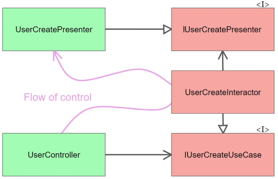 this.userCreateUseCase = userCreateUseCase; // 실제는 DIContainer에 등록된 UserCreateInteractor