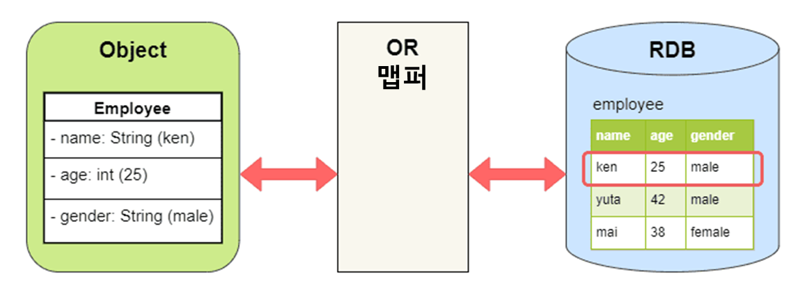 ORM에 대해서 구체적으로 살펴보자면, 앞서말했듯 어플리케이션의 오브젝트와 데이터 베이스(이하, DB)의 레코드 및 오브젝트 간의 관계와 테이블 간의 관계를 상호 맵핑하는 기법으로, ORM를 실현하기 위한 기능이나 소트프웨어를 OR 맵퍼라고 말한다.