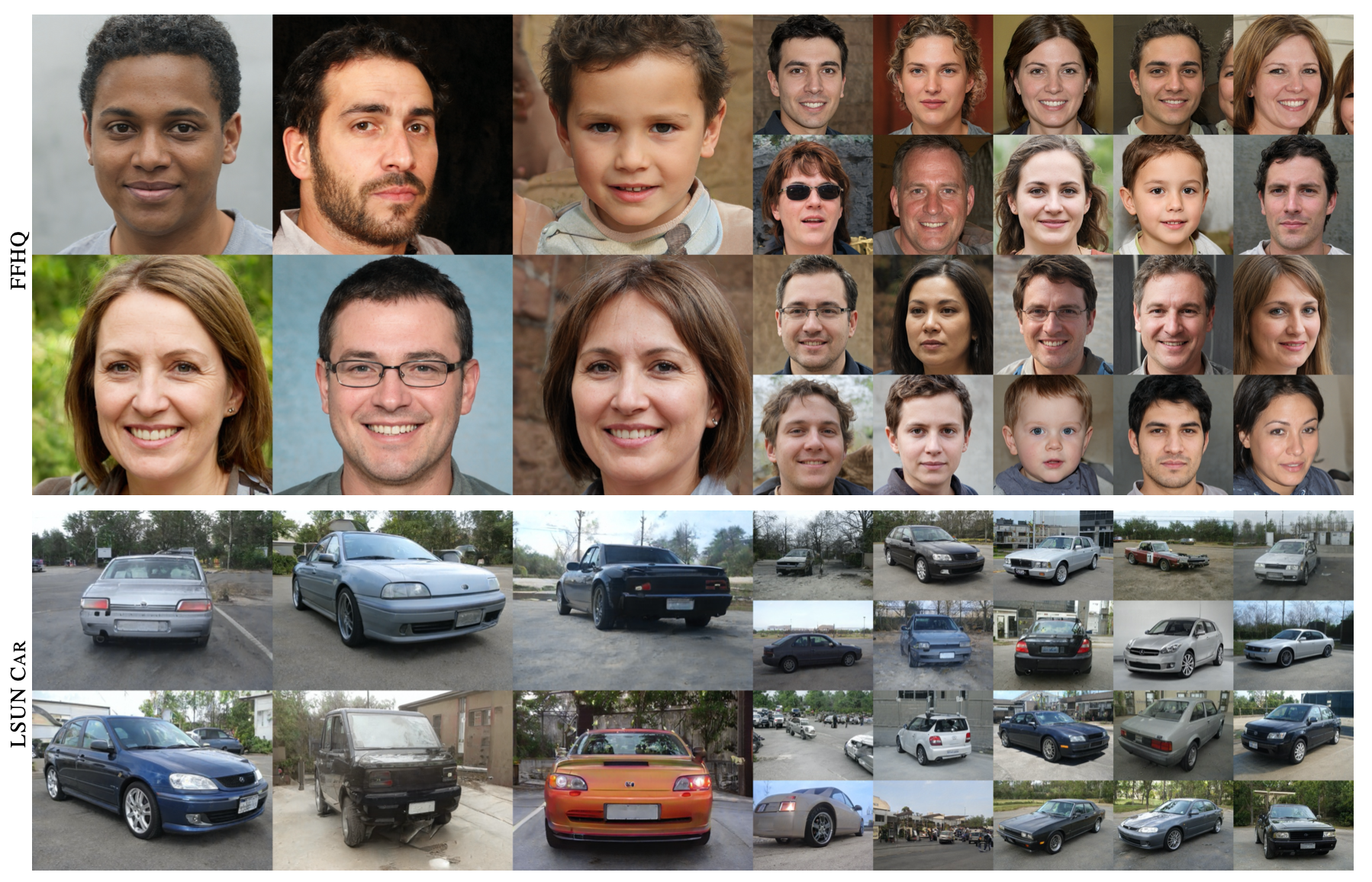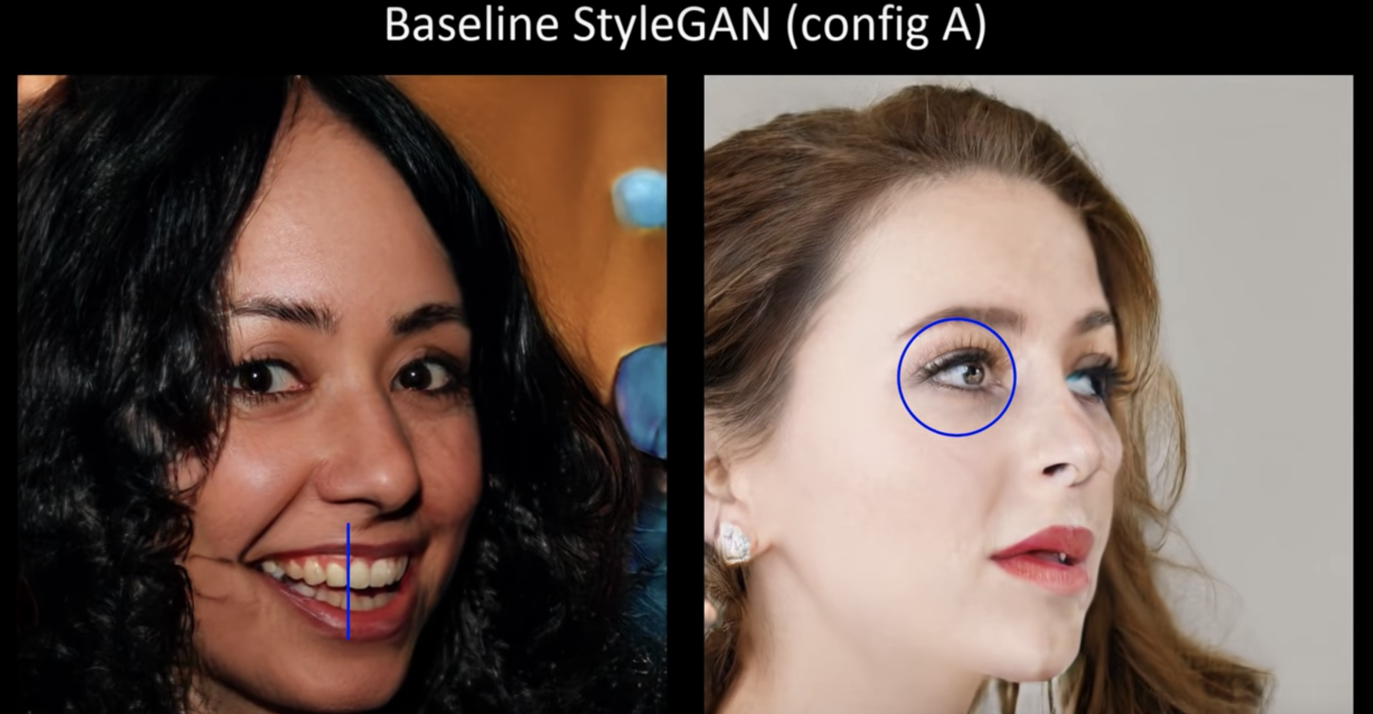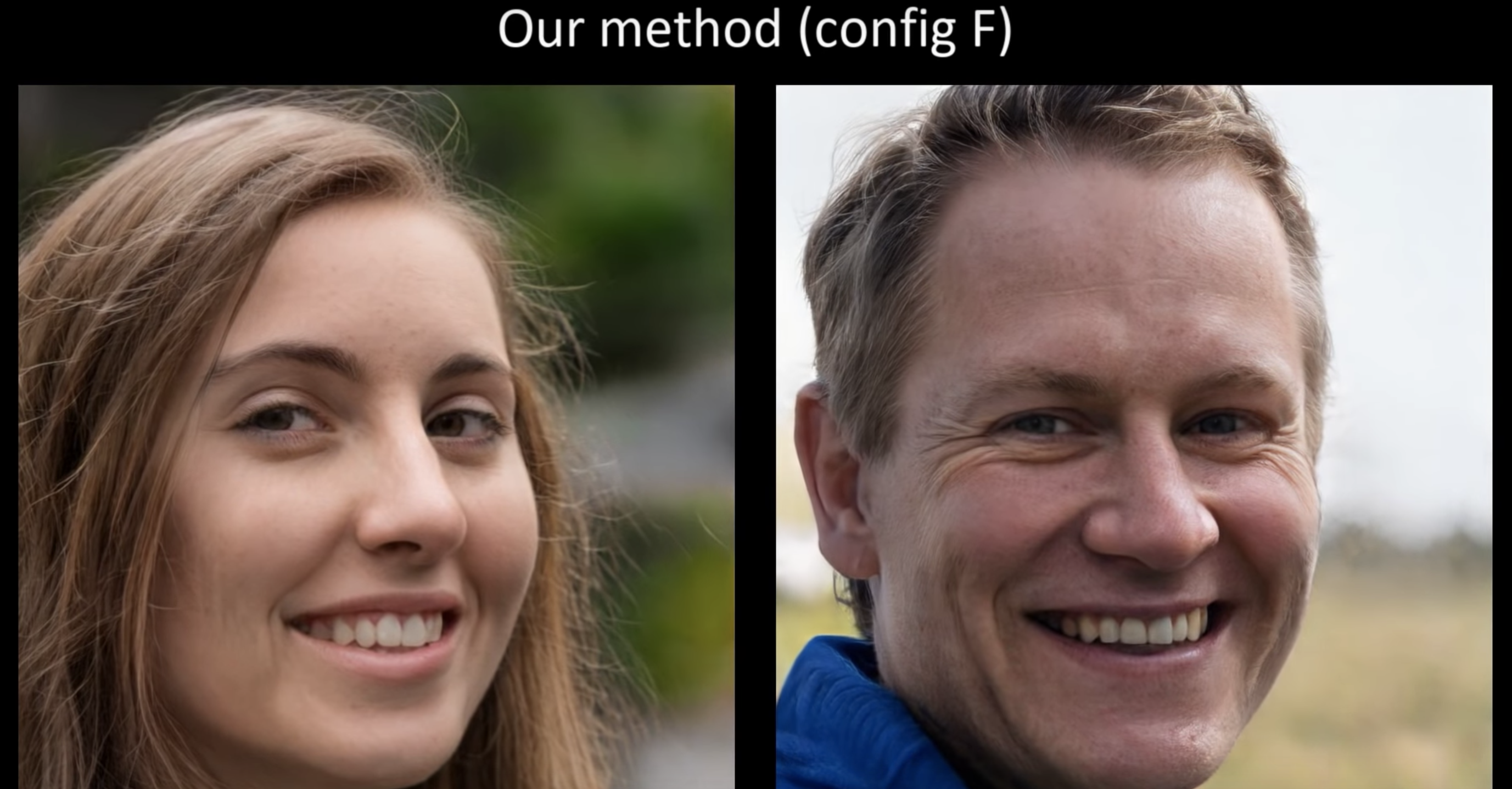 이런 기관을 사용해 생성한 이미지는 아래의 그림과 같다. StyleGAN에서는 눈이나 이가 부자연스러운 것에 비해, 새로운 기관에서는 얼굴의 방향 변화와 함께 눈이나 이가 자연스럽게 이동하고 있음을 알 수 있다.