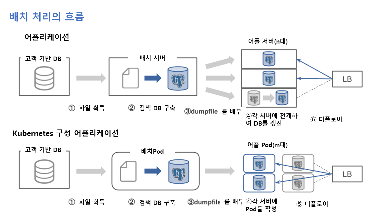 하루에 몇 번이고 배치 처리를 하여, 고객의 기반 시스템에서 연계된 모든 데이터를 읽어 들여, 검색, DB를 전부 재구축하고 있다.
