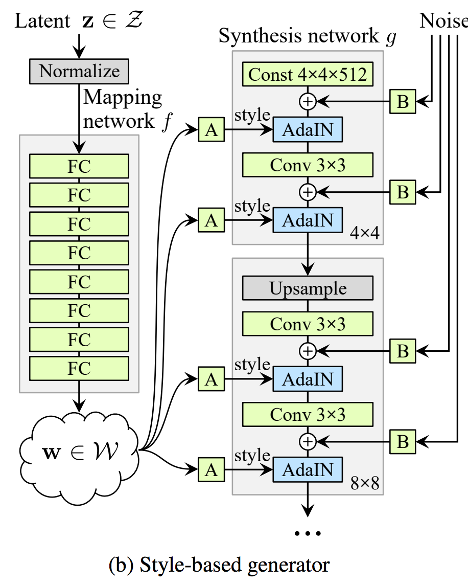 ▶ 포인트: 스타일 변환을 입력한 새로운 Generator를 고안하는 것으로, 1024x1024의 사이즈 고해상도 이미지를 생성하는데 성공하였다.