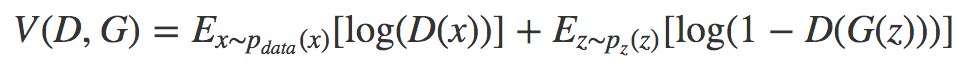 ▷Generator과 Discriminator은 아래의 목적 함수를 공유하고 있으며, Generator은 그 값을 최소화, Discriminator은 그 값을 최대화하는 것을 목표로 학습을 진행한다.