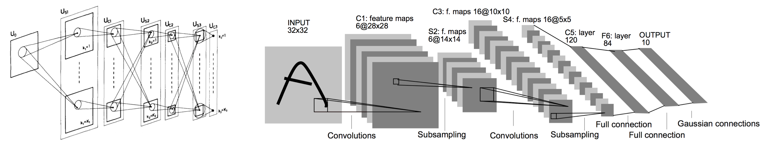 Convolutional Neural Networks(이하 CNN)은 주로 이미지 인식에 이용되는 뉴럴 네트워크의 한 종류이다. CNN의 원형은 생물의 뇌의 시각 피질과 관련된 신경 생물학적인 지식을 토대로 고안한 Neocognitron으로 볼 수 있다. Neocognitron은 특징 추출을 실행하는 단순형 세포에 대응하는 Convolution layer과, 위치의 어긋남을 허용하는 움직임을 가진 복수형세포에 대응하는 Pooling layer과의 상호적, 계층적으로 배치한 뉴럴 네트워크이다. Neocognitron에서는 자기 조직화에 의해 학습이 이루어지고 있었지만, 후에 LenCun에 의해 CNN의 backpropagation을 이용한 학습법이 확립되어, 예를 들면 LeNet이 문자인식에 있어서 성공을 거뒀다.