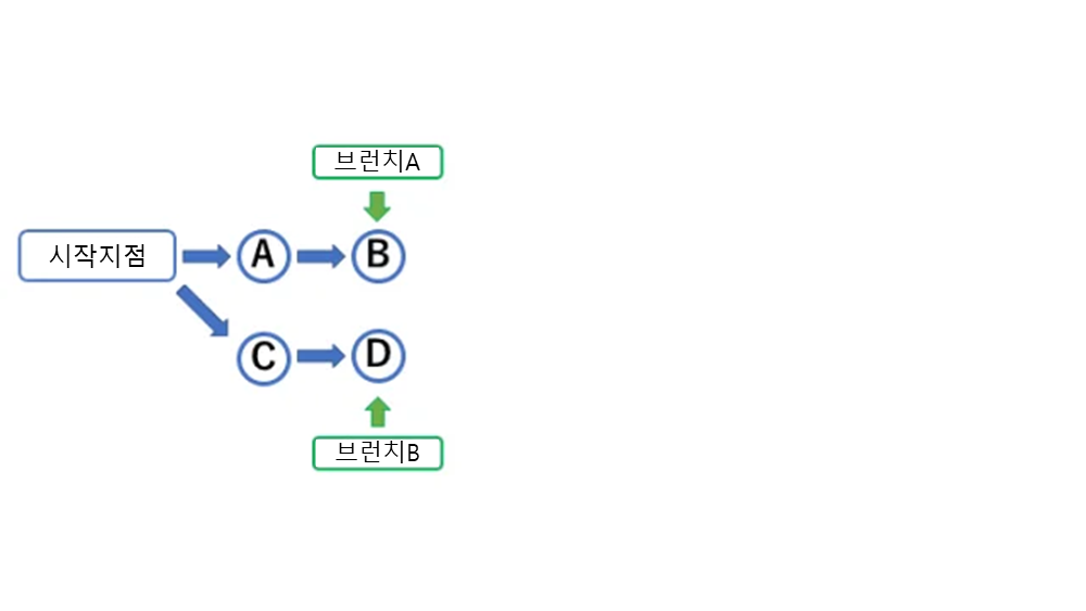 이 상태에서「브랜치 A」를 「브랜치 B」에 머지할 필요가 생겼다고 하자. 그냥 머지한다면 아래와 같이 될 것이다.