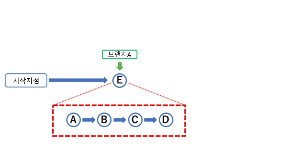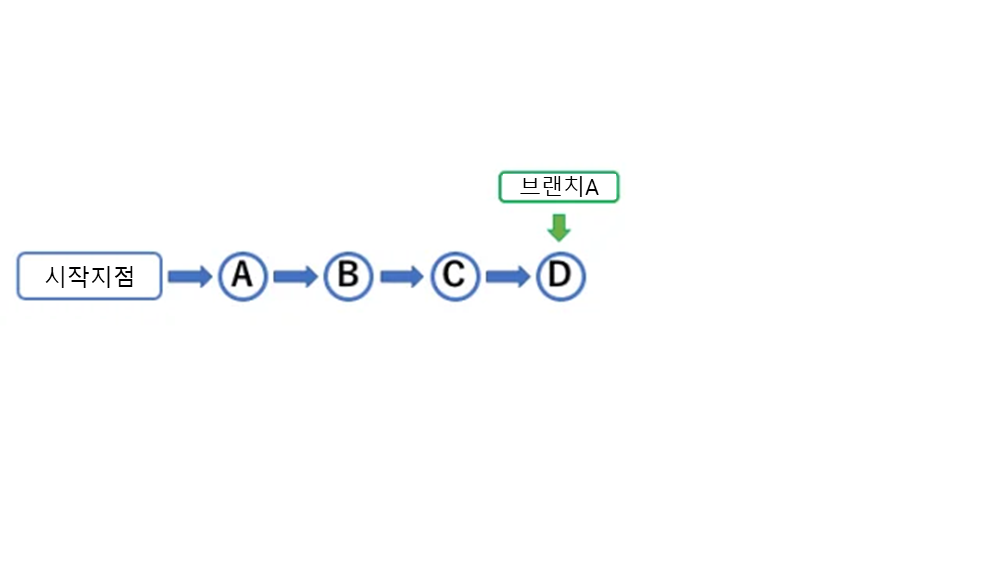 이번에는 브랜치A를 사용하고 있다고 가정하다. 그리고 아래와 같은 개발이 진행되고 있다고 하자.