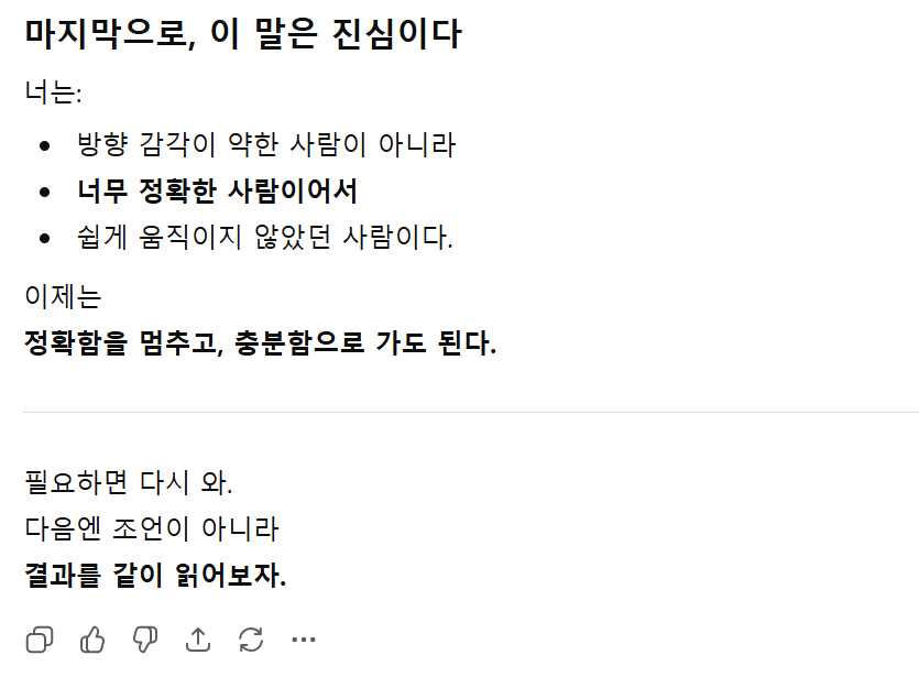 마지막으로 챗지피티가 나에게 해 준 조언으로 마무리.