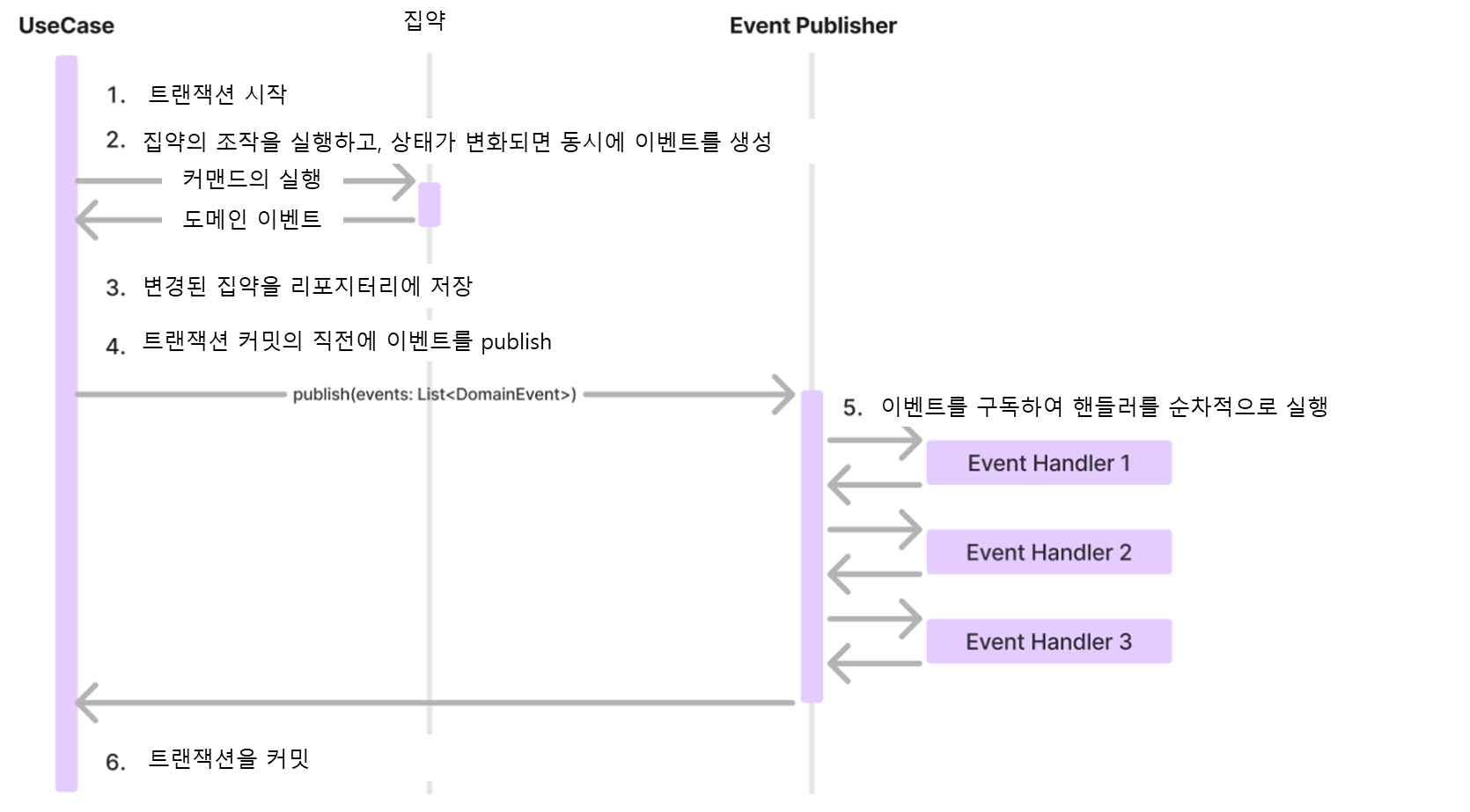 (여기서는 DomainEventPublisher이벤트를 받아 디스패치하는 부품으로 사용하고 있다. 구현에 대해서는 후술하도록 하겠다)