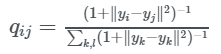 df=1일 때 t-SNE에서 neighborhood representation qij는 다음과 같다.