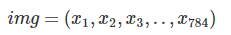 그럼, 이 784차원의 캔버스에 이미지를 생성하는 의미를 생각해보자. 하나의 이미지 데이터 img는 784개 값의 나열로 나타낼 수 있다. 즉, i번째의 픽셀 값 xi라고 한다면 아래의 식과 같이 표현할 수 있다.