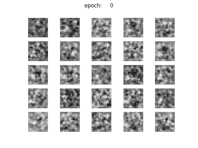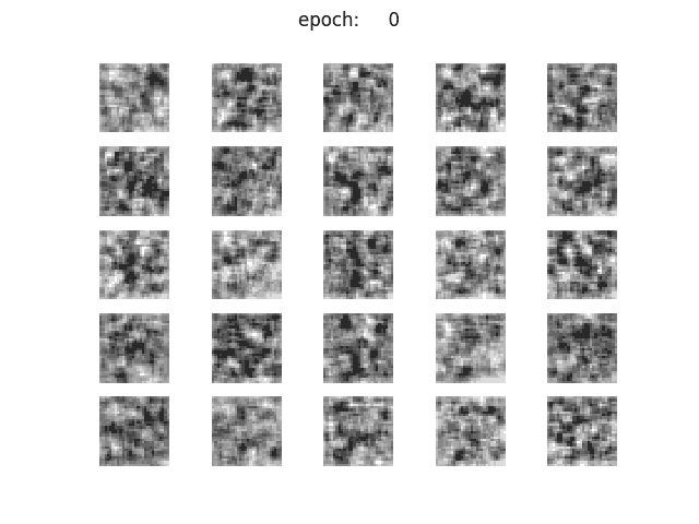 이것으로 실제로 z의 차원을 변화시켜, 각각의 생성 이미지를 살펴보자. 난수는 고정하여, 각 iteration마다 같은 z로부터 이미지를 출력해보았다.
