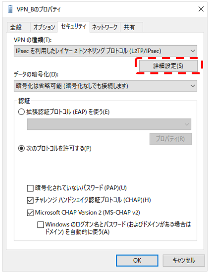 'CHAP(challenge handshake 인증 프로토콜)'과 'Microsoft CHAP Version 2(MS-CHAP v2)' 를 체크한다.
