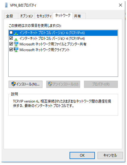 다음 '네트워킹'탭을 클릭하여, VPN연결을 사용할 포로토콜은 표시해 위와 같이 인터넷 프로토콜 버전6의 체크박스를 클릭해 해제한다.