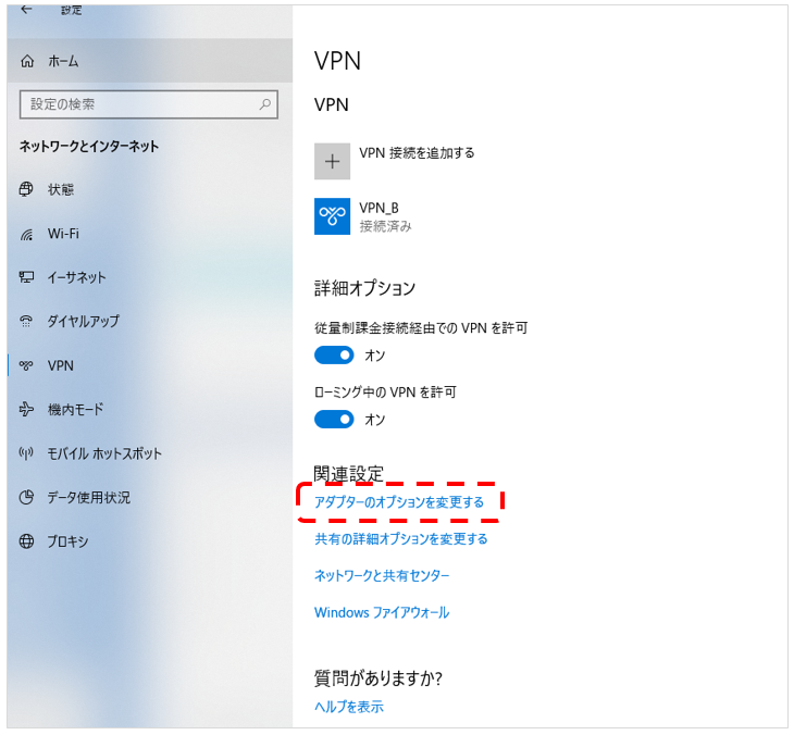 VPN 화면내의 '어댑터 옵션 변경'을 클릭한다.