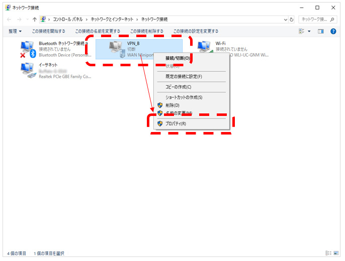 방금 설정한 VPN의 아이콘을 우클릭하여 '속성'메뉴를 선택한다.