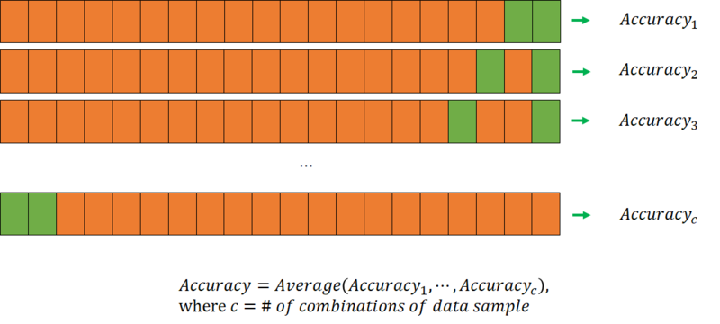 이 방법은 데이터세트가 작은 경우 더 나은 추정이 가능하게 되는 방법이다. 덧붙여서 테스트 세트를 하나가 아닌 P개 사용하는 경우를, leave-p-out-cross-validation이라고 부른다.
