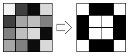 임계치를 기준으로 분리되는 화소를 각각 0,1로 한다.