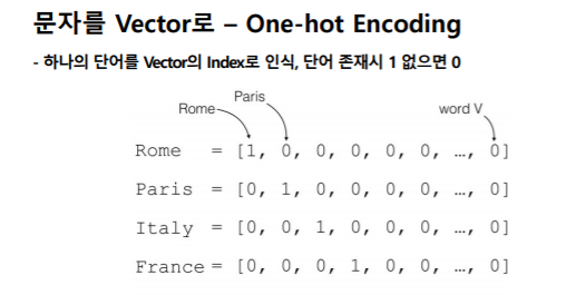 문자를 Vector로 바꾸는 여러 방법이 있지만 여기서는 One-hot Encoding라는 방법을 이용할 것이다.
