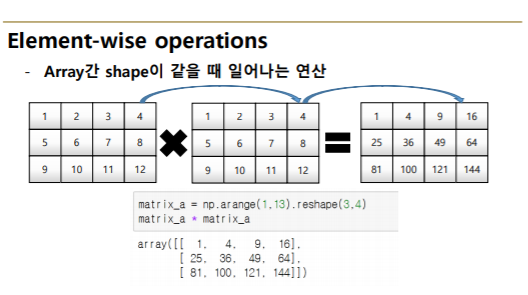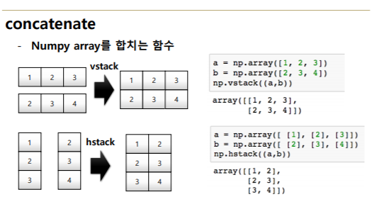 - numpy는 하나의 데이터 type만 배열에 넣을 수 있음