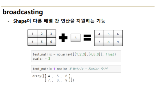 - shape이 다른 배열 간 연산을 지원하는 기능