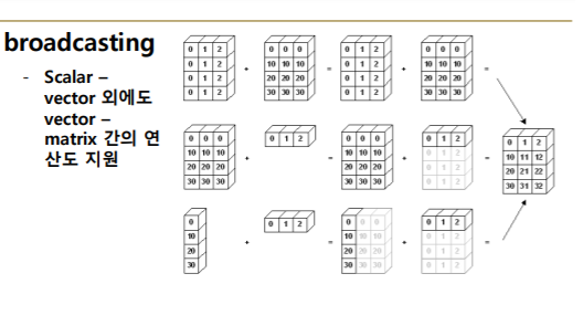 - Scalar-vector 이외에도 vector-matrix 간의 연산도 지원한다.