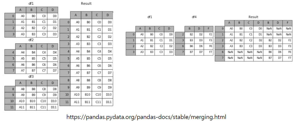 - SQL에서 많이 사용하는 Merge와 같은 기능 ; 두 개의 데이터를 하나로 합침
