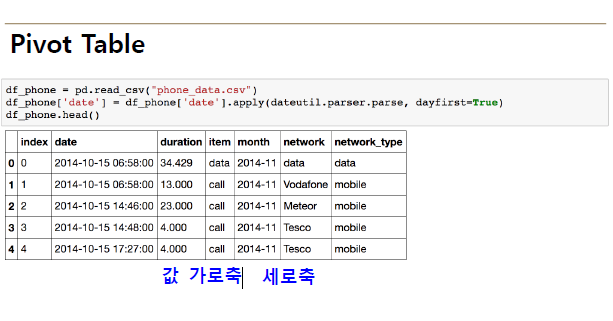 - Index축은 groupby와 동일함